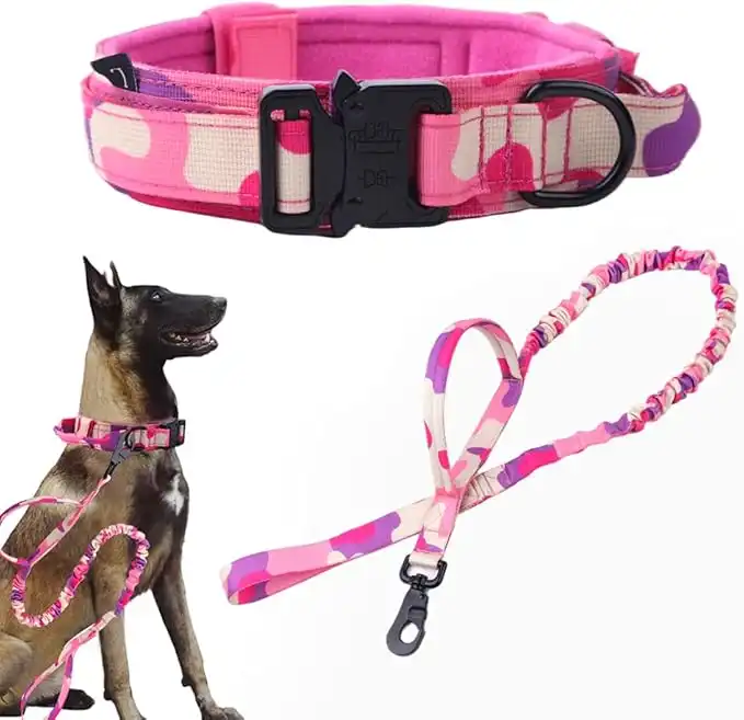 amazon.aeTactical Dog Collar and Leash Set Tactical Dog Collar with Handle Bungee Leash Adjustable Military Training Nylon Collar Dog Training Collar Leash Set with Control Handleand Metal Buckle (Pink Camo L