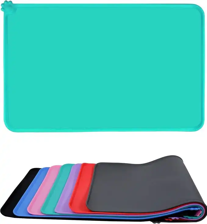 Taglory Dog and Cat Food Mat, Waterproof & Non Slip Silicone Pet Feeding Mat for Food and Water Bowls, 53x37cm Turquoise