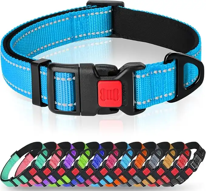 Taglory Reflective Dog Collar with Safety Locking Buckle, Adjustable Nylon Pet Collars for Extra Large Dogs Female Male, Sky Blue, XL
