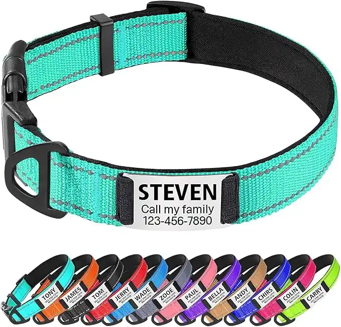 TagME Personalised Dog Collar Reflective Padded Collar for Small Medium Dogs with Custom Engraved Slide On Name Plate,Teal S — Price History & Tracker | DeserTracker