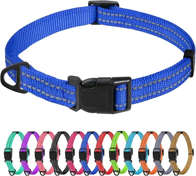 TagMe Reflective Nylon Dog Collars, Adjustable Classic Dog Collar with Quick Release Buckle for Extra Small Dogs, Royal Blue, 1.5 cm Width