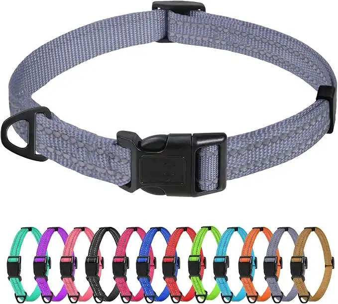 TagMe Reflective Nylon Dog Collars, Adjustable Classic Pet Collar with Quick Release Buckle for Small Dogs, Grey, 1.5 cm Width