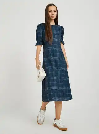 Compare all Take Two Check Print Puff Sleeve A-Line Midi Dress prices