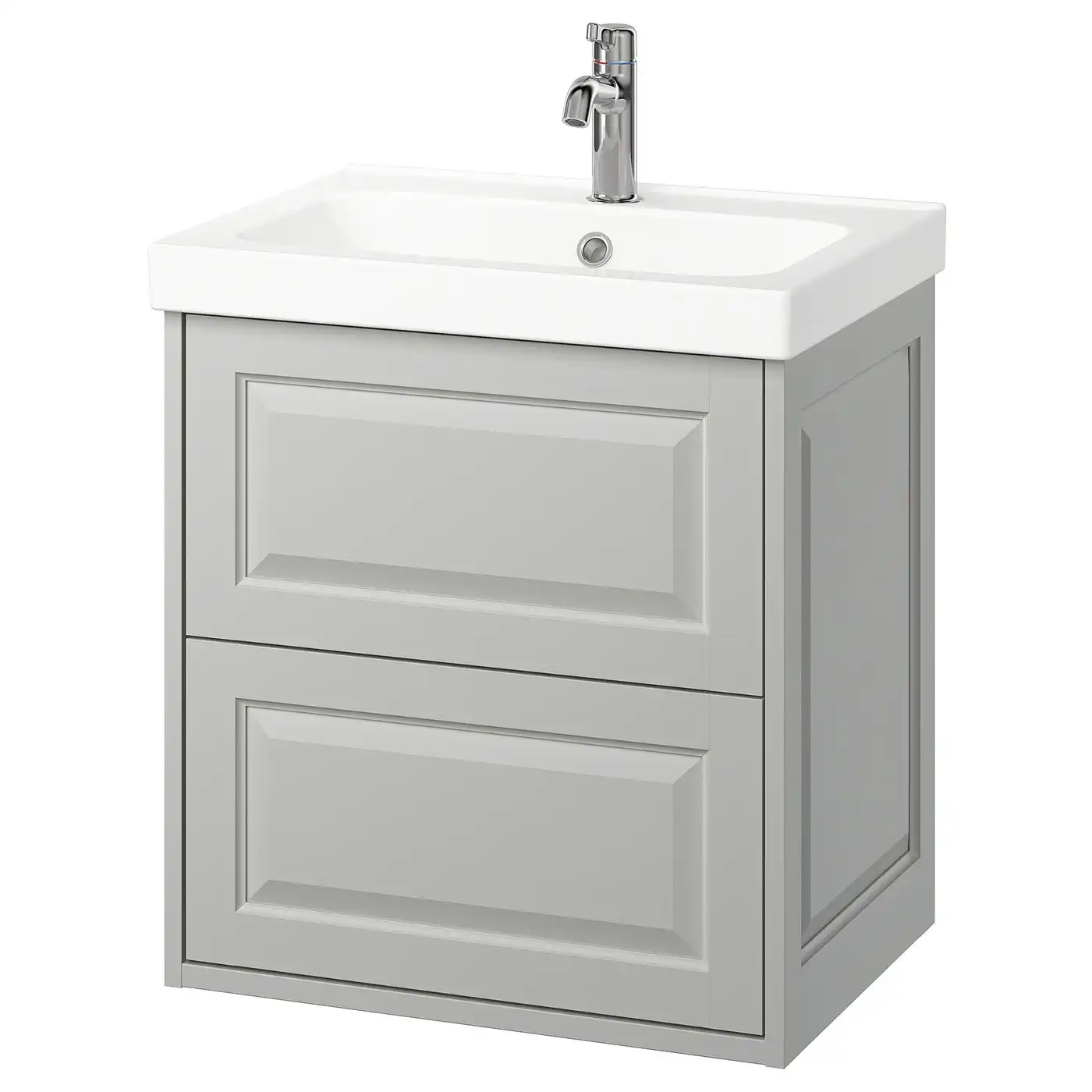 TÄNNFORSEN / ORRSJÖN Wash-stnd w drawers/wash-basin/tap - light grey 62x49x69 cm
