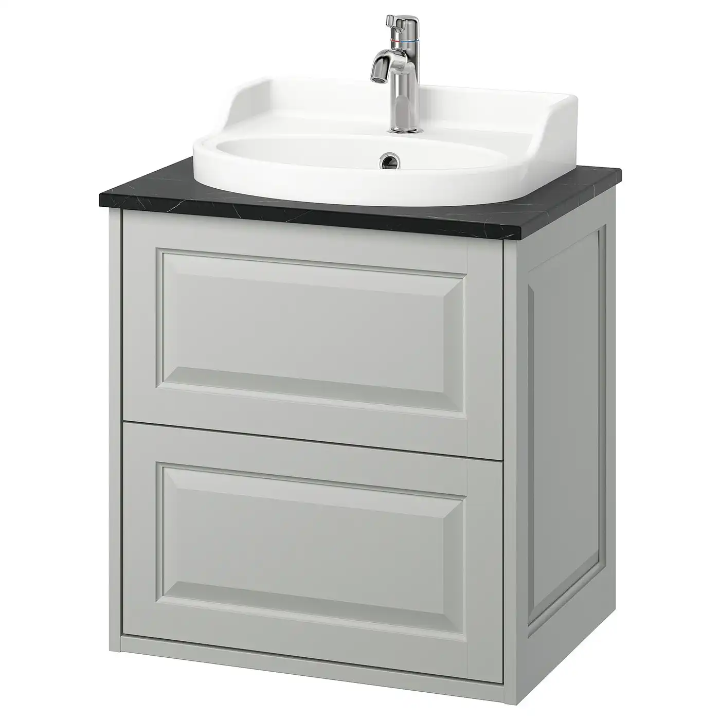 TÄNNFORSEN / RUTSJÖN Wash-stnd w drawers/wash-basin/tap - light grey/black marble effect 62x49x76 cm