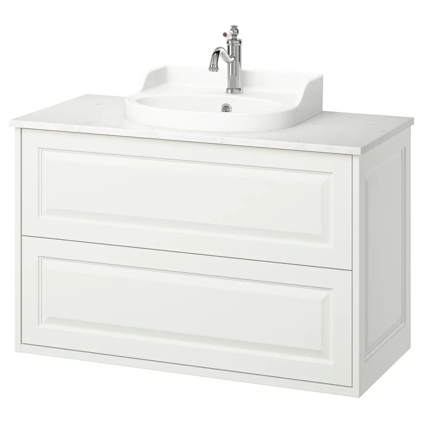 TÄNNFORSEN / RUTSJÖN Wash-stnd w drawers/wash-basin/tap - white/white marble effect 102x49x76 cm — Price History & Tracker | DeserTracker