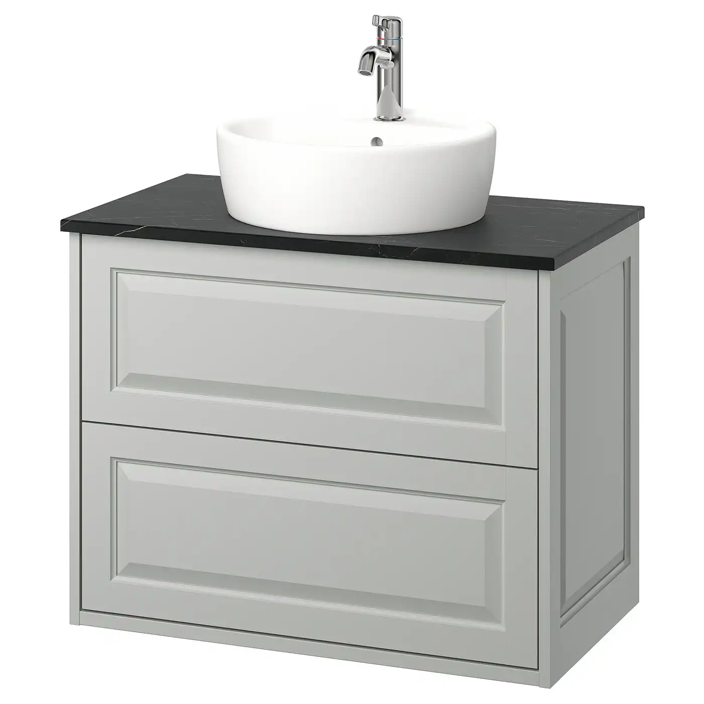TÄNNFORSEN / TÖRNVIKEN Wash-stnd w drawers/wash-basin/tap - light grey/black marble effect 82x49x79 cm