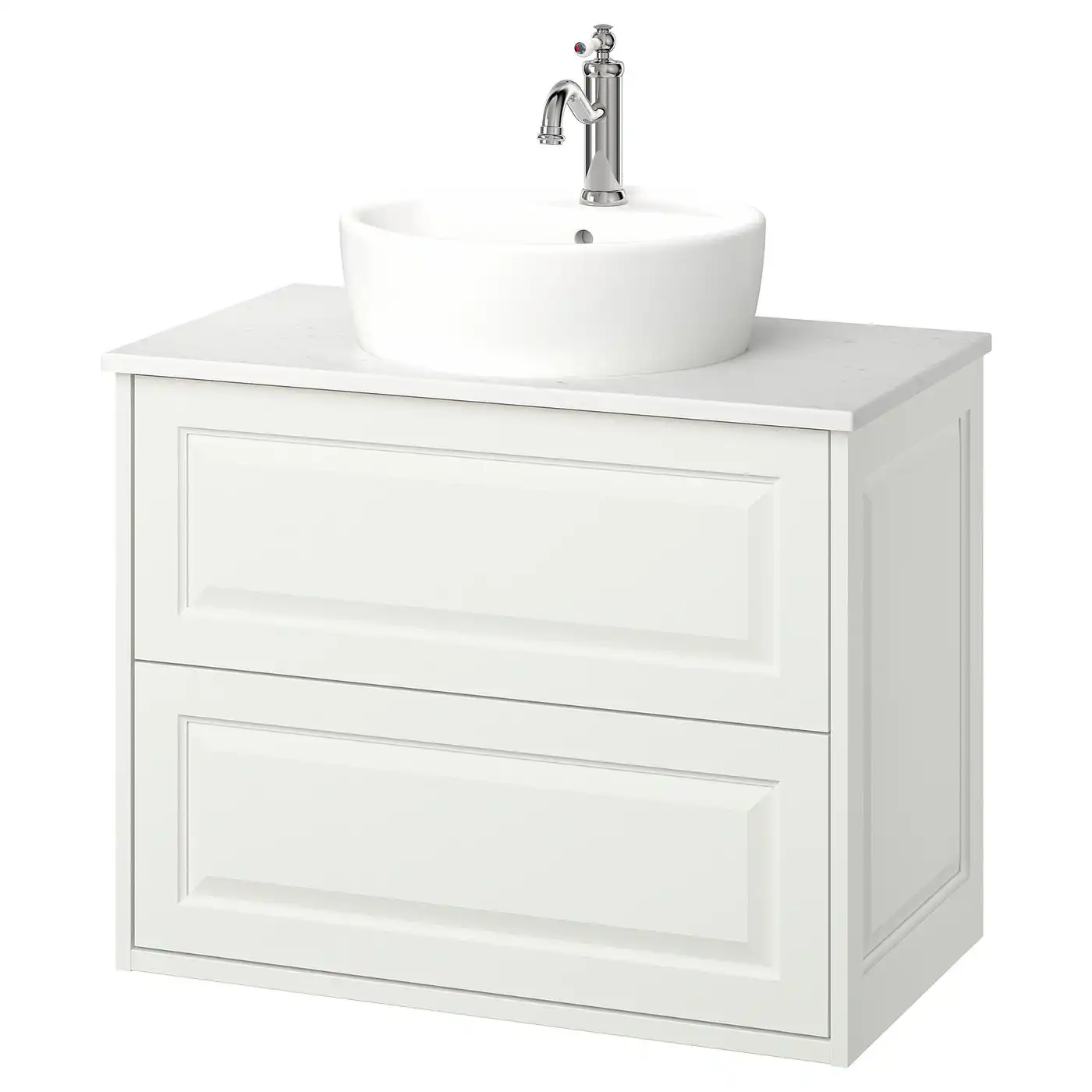 TÄNNFORSEN / TÖRNVIKEN Wash-stnd w drawers/wash-basin/tap - white/white marble effect 82x49x79 cm