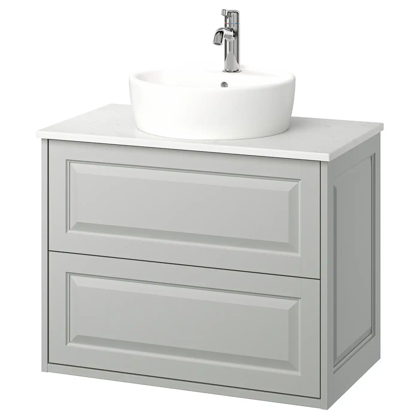 TÄNNFORSEN / TÖRNVIKEN Wash-stnd w drawers/wash-basin/tap - light grey/white marble effect 82x49x79 cm