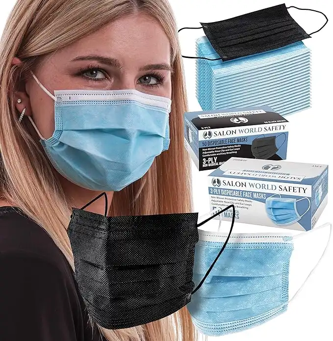 TCP Global Salon World Safety - Black and Blue Colored Face Masks Variety Pack (50ea Color = 100 Masks) Breathable Disposable 3-Ply Protective PPE with Nose Clip and Ear Loops — Price History & Tracker | DeserTracker