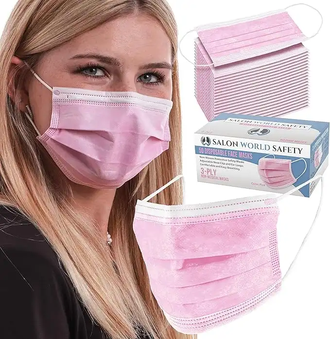 TCP Global Salon World Safety - Sealed Dispenser Box of 50 Pink Face Masks Breathable Disposable 3-Ply Protective PPE with Nose Clip and Ear Loops — Price History & Tracker | DeserTracker