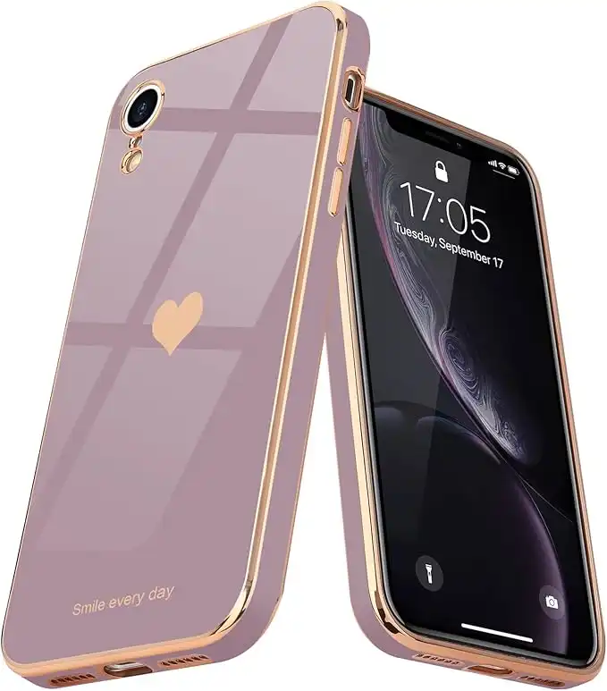 amazon.aeTeageo Compatible with iPhone Xr Case for Women Girl Cute Love-Heart Luxury Bling Plating Soft Back Cover Raised Full Camera Protection Bumper Silicone Shockproof Phone Case for iPhone Xr, Lavender