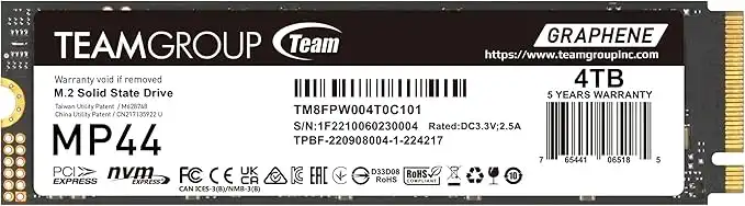 TEAMGROUP MP44 4TB SLC Cache Gen 4x4 M.2 2280 PCIe 4.0 with NVMe Laptop & Desktop & NUC & NAS SSD Solid State Drive (R/W Speed up to 7,400/6,900MB/s) TM8FPW004T0C101 — Price History & Tracker | DeserTracker