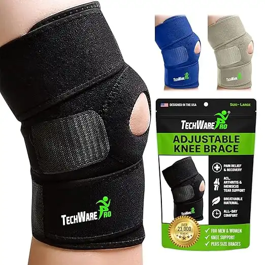 TechWare Pro Knee Brace Support - Plus Size Knee Brace. Relieves ACL, LCL, MCL, Meniscus Tear, Arthritis, Tendonitis Pain. Dual Stabilizers Non Slip Comfort Neoprene. Bi-Directional Straps - XXXLarge