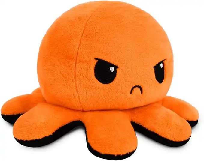 TeeTurtle - The Original Reversible Octopus Plushie - Black + Orange - Cute Sensory Fidget Stuffed Animals That Show Your Mood - Perfect for Halloween!