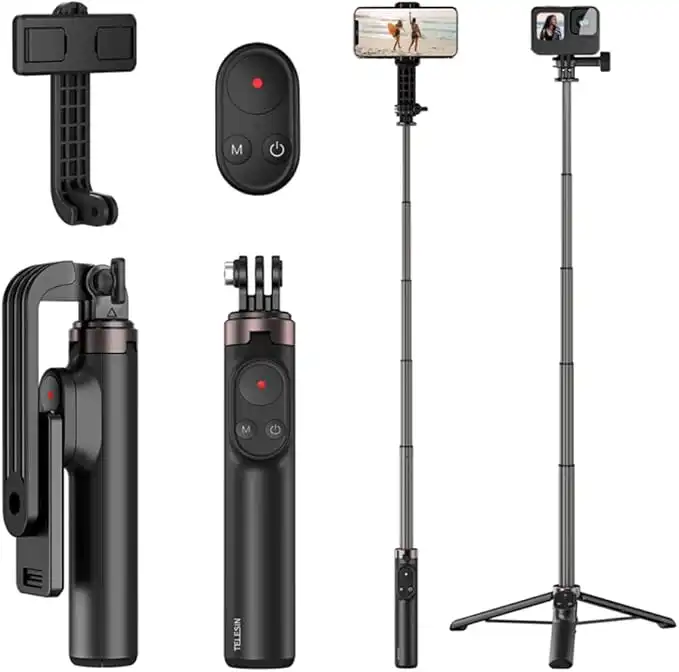 amazon.aeTELESIN Wireless Remote Control Selfie Stick for GoPro HERO13 HERO12 HERO11 HERO10 HERO9 GoPro Max with Phone Holder Clip and Tripod for Action Camera Mobile Phone