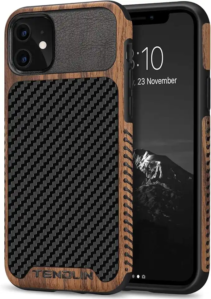 TENDLIN Compatible with iPhone 11 Case Wood Grain with Carbon Fiber Texture Design Leather Hybrid Case Black — Price History & Tracker | DeserTracker