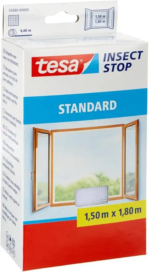tesa 55680-00000-02 Insect Stop Hook and Loop Standard Easy To Use, Washable Insect Screen For Windows, 1.5 x 1.8 m - White