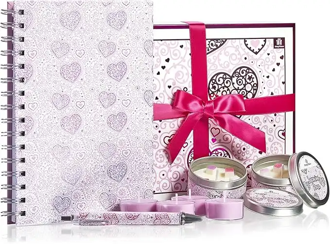 thegiftbox Scented Candle Gifts for Women with Notebook and Pen Gifts for Mum Ladies Love Gifts for Birthday Christmas Gifts (Loveheart) — Price History & Tracker | DeserTracker