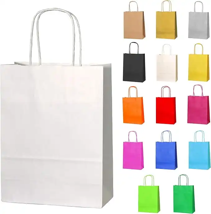 Thepaperbagstore 10 White Paper Gift Bags with Handles - 18 x 22 x 8 cm - Colourful Gift Bags for Kids and Adults Parties, Birthdays, Weddings, Baby Showers, Funerals