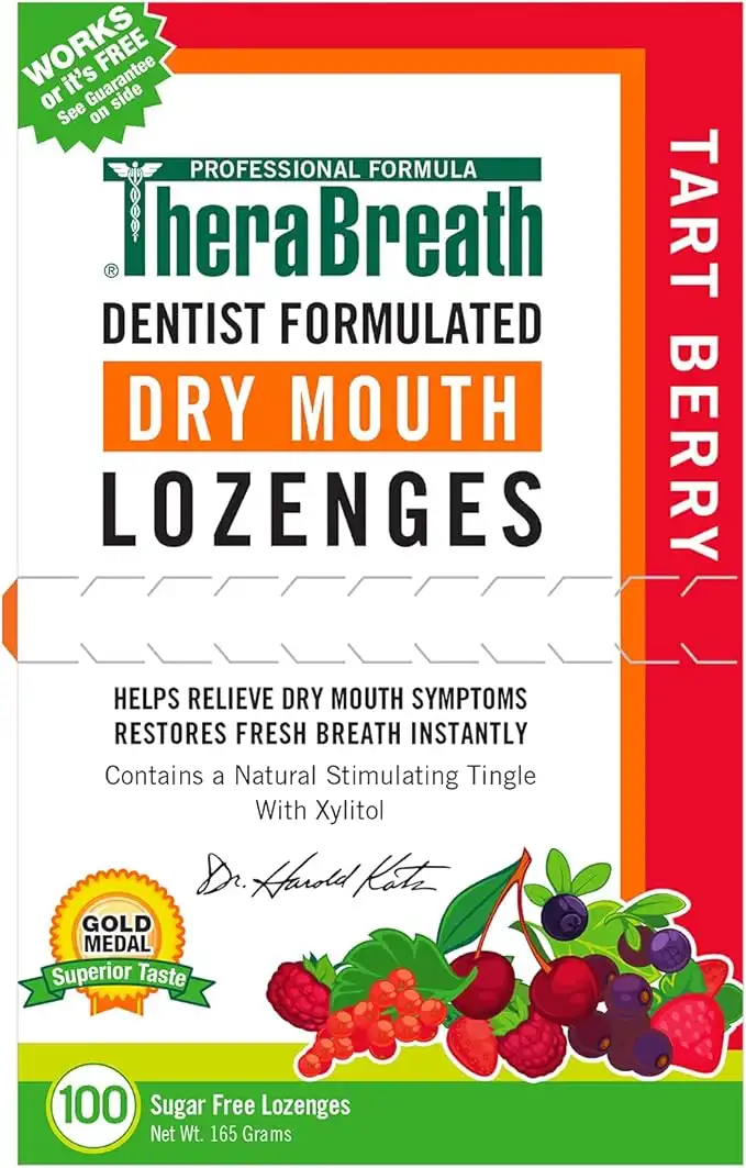TheraBreath Dry Mouth Lozenges with ZINC, Tart Berry Flavor, 100 Lozenges