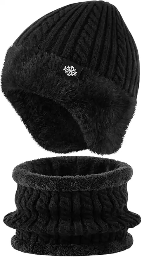 Thermal Winter Beanie Hat Set 2-in-1 with Earflaps and Fleece Neck Warmer Scarf for Men and Women, Outdoor Cold Weather Protection Gear — Price History & Tracker | DeserTracker