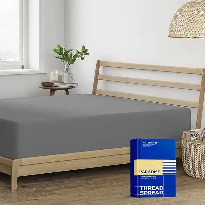 Thread Spread Luxury Egyptian Cotton King Fitted Sheet Only - 1000-Thread-Count 16" Deep Pocket King Fitted Sheet, Soft, Cooling, Sateen Weave, Extra Long Staple King Size Fitted Sheet - Dark Grey