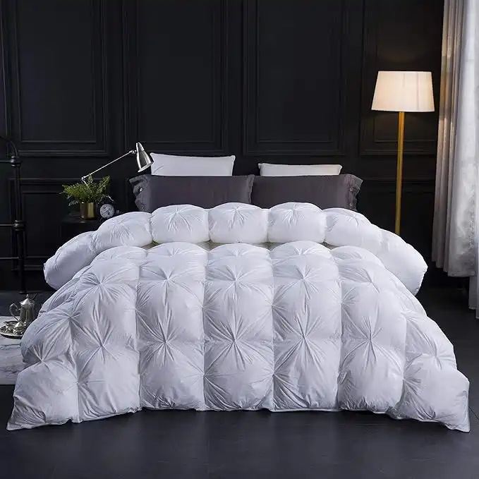 amazon.aeThree Geese Pinch Pleat Goose Feathers Down Comforter King Size Duvet Insert,750+ Fill Power,1200TC 100% Cotton Fabric,Premium White Comforter for All Seasons with 8 Tabs
