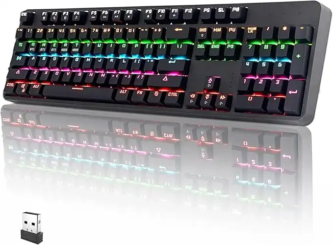 amazon.comThree-Mode Mechanical Keyboard (Wired/Bluetooth/2.4G) 104-Key RGB Backlit Gaming Keyboard with Hot-Swappable Red Switches, DIY Detachable Cover, Full N-Key Rollover, ABS Keycaps