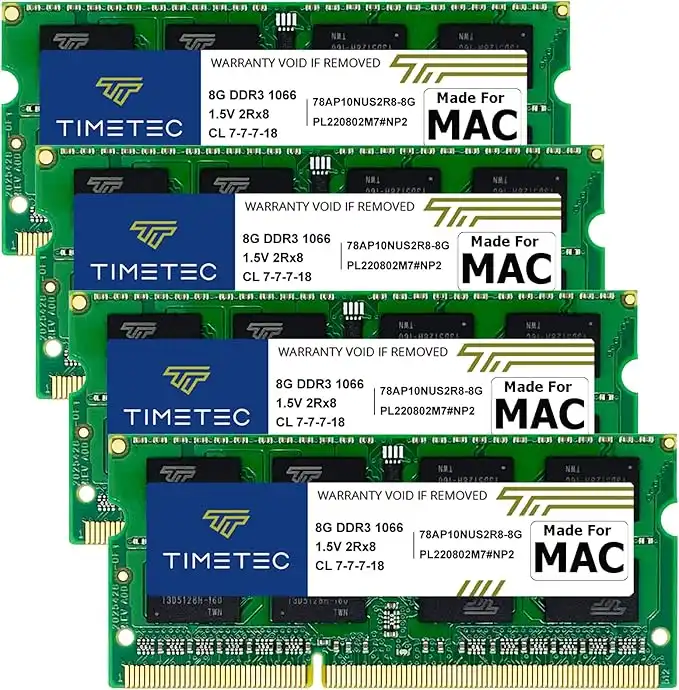 amazon.aeTimetec 32GB KIT(4x8GB) Compatible for Apple DDR3 1067MHz/1066MHz PC3-8500 CL7 Dual Rank for iMac (Late 2009 27-inch) 204 Pin Dual Rank SODIMM Memory Module MAC RAM Upgrade for iMac 11,1