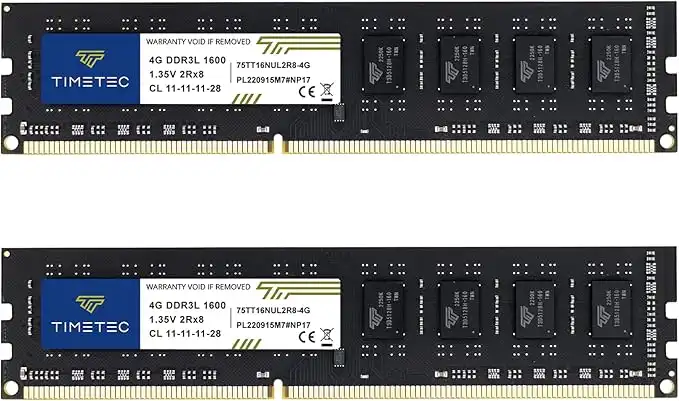 Timetec 8GB KIT(2x4GB) DDR3L / DDR3 1600MHz PC3L-12800 / PC3-12800 Non-ECC Unbuffered 1.35V / 1.5V CL11 2Rx8 Dual Rank 240 Pin UDIMM Desktop PC Computer Memory RAM Module Upgrade (8GB KIT(2x4GB))