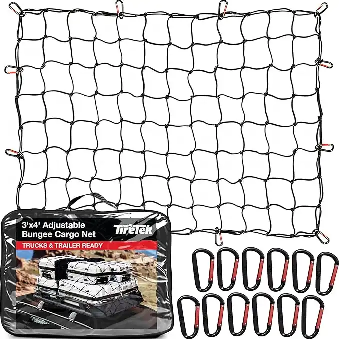 amazon.aeTireTek Truck Bed Cargo Net for Cars & SUVs - 3' x 4' Stretches to 6' x 8' Cargo Net - Small Truck Bed Net w/ 12 Metal Carabiners - for Frontier, Tacoma, Colorado & Subaru Crosstrek Accessories