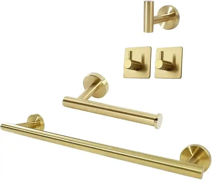 TocTen 5 Piece Bathroom Hardware Set SUS304 Thicken Stainless Steel-Towel Rack Set Include 16" Hand Towel Bar+Toilet Paper Holder+3Robe Towel Hooks Bathroom Accessories Towel Bar Set (Gold) — Price History & Tracker | DeserTracker