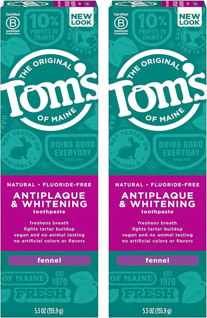 Tom's of Maine Fluoride-Free Antiplaque & Whitening Natural Toothpaste, Fennel, 5.5 oz (Pack of 2) (Packaging May Vary)