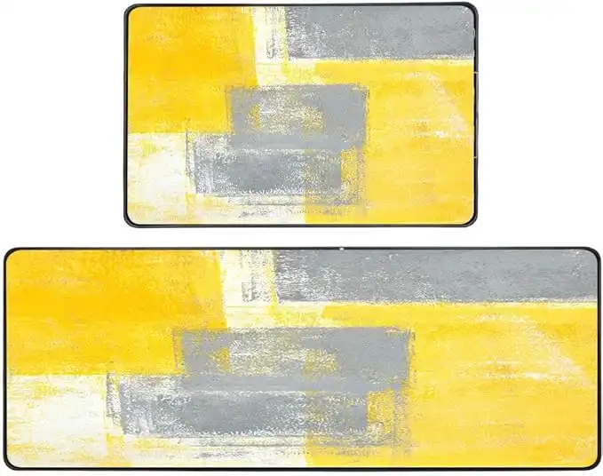 TOMWISH Kitchen Rugs and Mats Non Skid Washable Yellow Kitchen Rug Grey and Yellow Abstract Art Painting Kitchen Rugs Sets 2 Piece Floor Mats for Home Kitchen 17"X48"+17"X24" — Price History & Tracker | DeserTracker