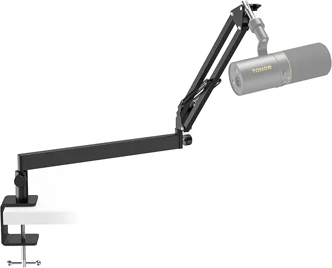 Tonor Mic Arm Desk Mount, Low Profile Boom Arm, Microphone Arm, Adjustable Mic Stand with Desk Mount Clamp, Cable Management, 3/8’’ and 5/8’’ Screwadapter for Most Microphone, Black, T20LP