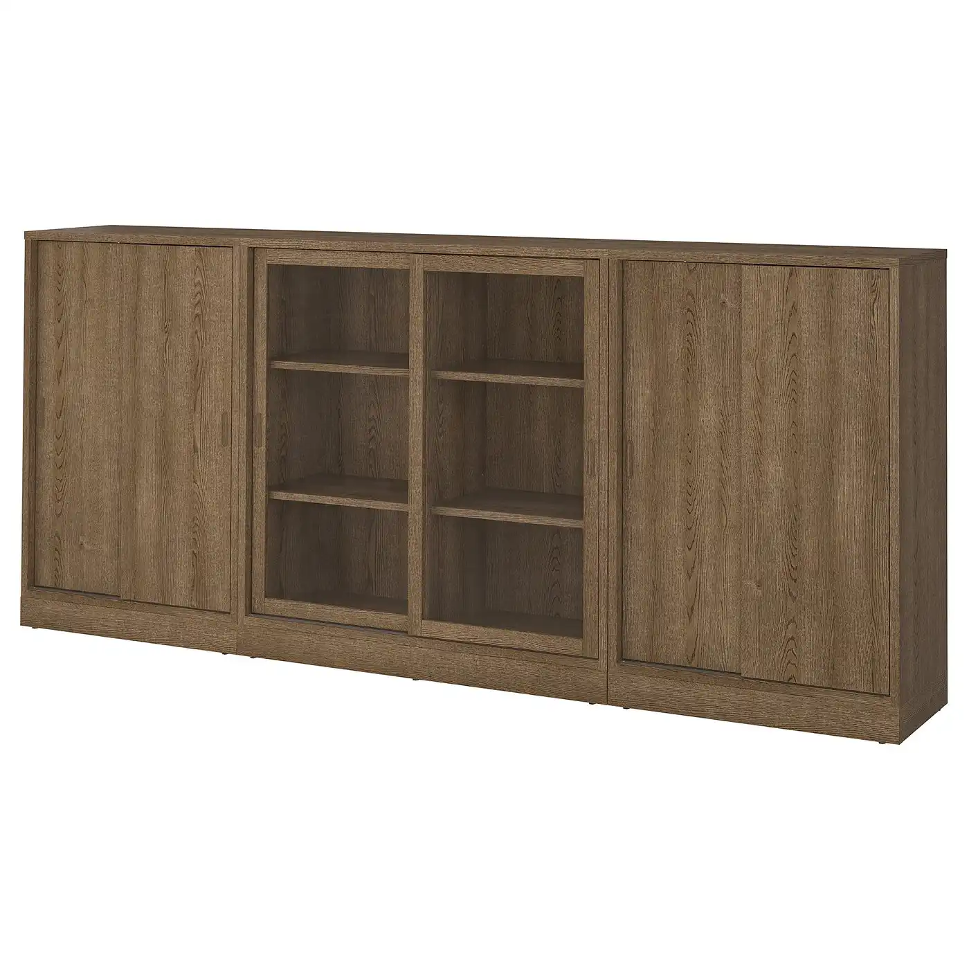 IKEA TONSTAD storage combination with sliding glass doors 284x37x120 cm brown stained oak veneer/clear glass