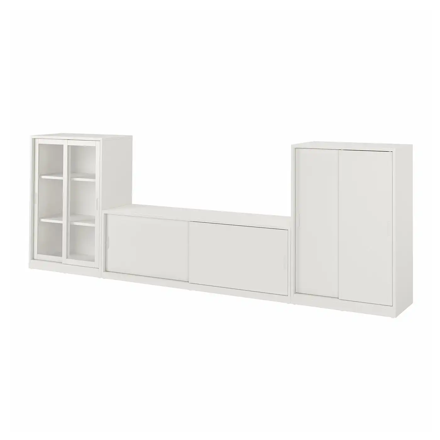 TONSTAD TV/storage comb with sliding doors - off-white/clear glass 339x37x116 cm — Price History & Tracker | DeserTracker