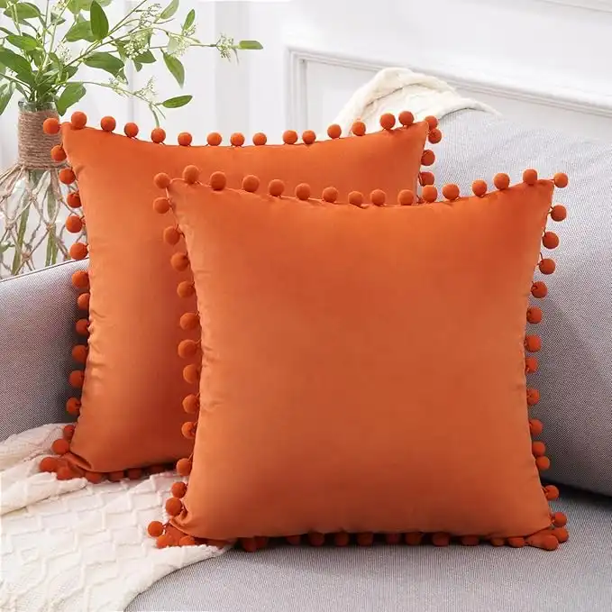 Top Finel Decorative Throw Pillow Covers for Couch, 18x18 Sofa Pillow Covers Set of 2 Orange Velvet Cushion Cases with Pom-poms for Bedroom Livingroom Farmhouse Home Decor — Price History & Tracker | DeserTracker