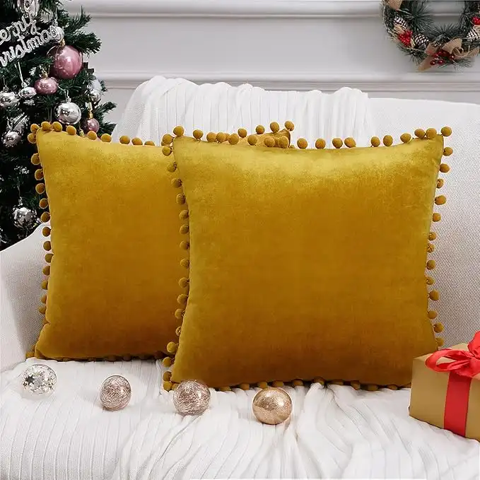amazon.aeTop Finel Gold Decorative Throw Pillow Covers for Couch, 18x18 Inch Velvet Couch Pillow Covers Set of 2 with Pom-poms Cushion Cases for Bedroom Livingroom Party Bar Wedding Home Decor