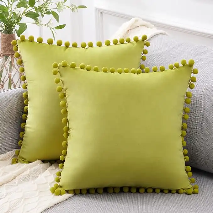 amazon.aeTop Finel Grass Green Couch Pillow Covers 18x18 Set of 2 Decorative Throw Pillow Covers with Pom Poms Soft Velvet Square Cushion Covers for Bedroom Livingroom Spring Easter Home Decor