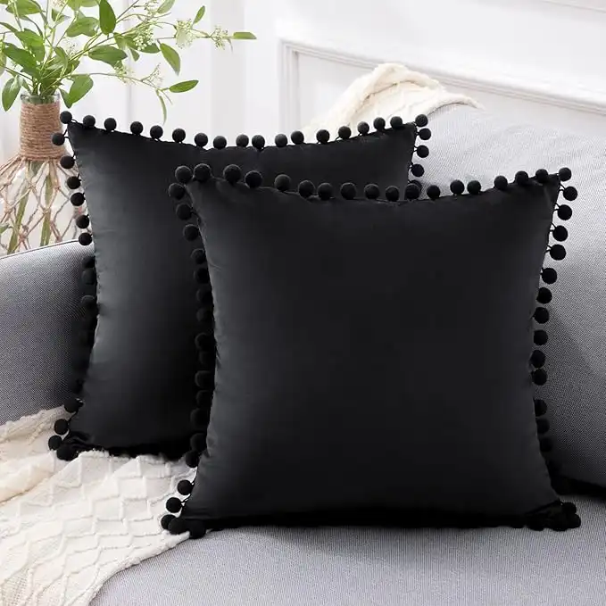 amazon.aeTop Finel Decorative Throw Pillow Covers 18x18 inches Set of 2, Black Pillow Cover with Pom Poms, Soft Velvet Couch Cushion Covers for Bedroom Livingroom Car Farmhouse Boho Home Decor