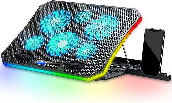 TopMate C12 Laptop Cooling Pad RGB Gaming Notebook Cooler for Desk and Lap Use, Laptop Fan Stand 8 Adjustable Heights with 6 Quiet Fans and Phone Holder, for 15.6-17.3 Inch Laptops-Ice Blue LED Light