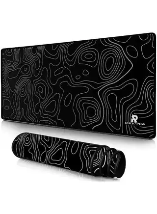 Topographic Contour Large Gaming Mouse Pad with Stitched Edges Extended Mousepad with Superior Cloth Surface Non-Slip Rubber Base Water Resist Keyboard Pad