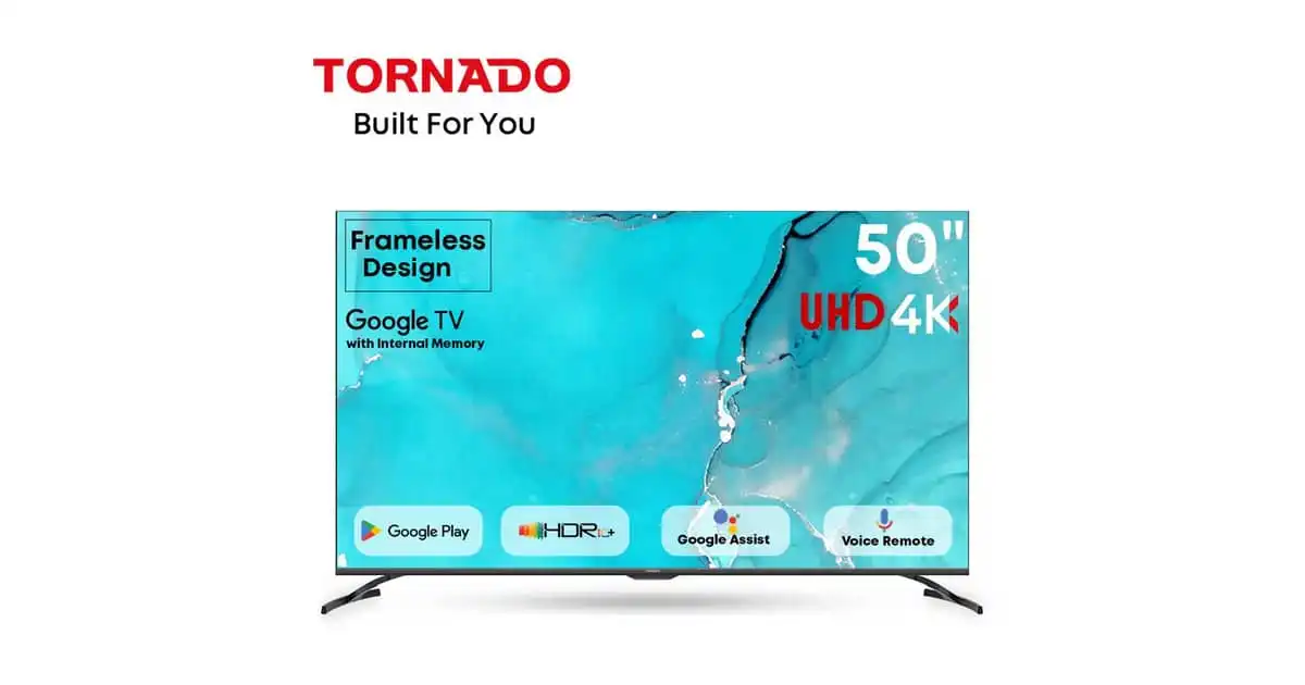 Tornado 50″ 4K UHD Google Smart TV, Frameless Design – 50UA3400G (2024 Model)