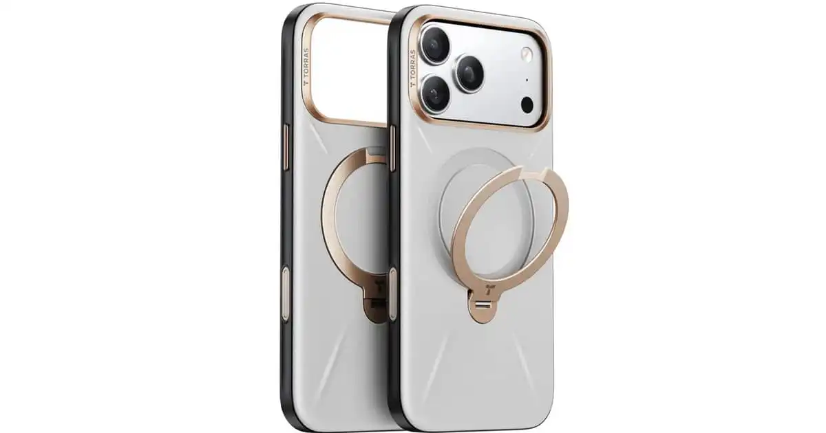 Torras Ostand Spin VegSkin Series Case Pearl Grey iPhone 17 Pro – X00FX2602