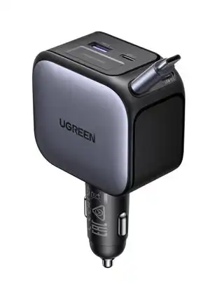 noon.comTotal 145W Car Charger Built-in 60W Retractable Cable 3C1A Car Adapter LED Indicator Safe Protection Multi-devices Supported Compatible With Macbook Dell Lenovo iPhone 17 Pro Max Galaxy S25 24 Ultra