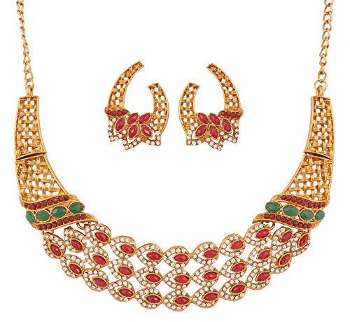 Touchstone Indian Bollywood white Rhinestone faux ruby emerald ethnic netting theme bridal designer jewelry necklace set for women in antique gold tone — Price History & Tracker | DeserTracker