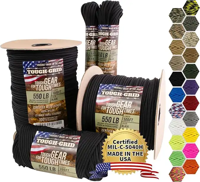 TOUGH-GRID Paracord Rope 550 lbs Nylon Parachute Cord, Made in USA Survival Kit, Outdoor Adventures, Camping, Tactical Gear & Emergency Supplies, Military Type III Mil-Spec — Price History & Tracker | DeserTracker