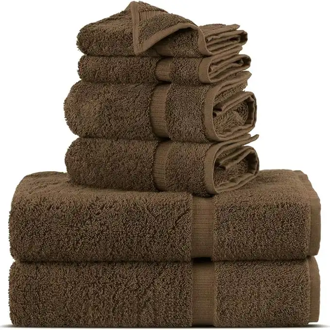 Towel Bazaar Premium Turkish Cotton Super Soft and Absorbent Towels (6-Piece Towel Set, Cocoa)